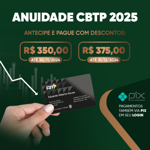Anuidade CBTP 2025: novos valores e descontos para pagamentos até dezembro deste ano.