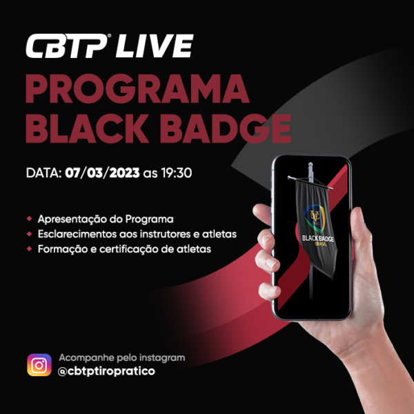 A Confederação Brasileira de Tiro Prático – CBTP, informa que no próximo dia 07/03/2023, terça-feira, às 19h30 (horário de Brasília), será realizada uma live para falar sobre o Programa Black Badge.