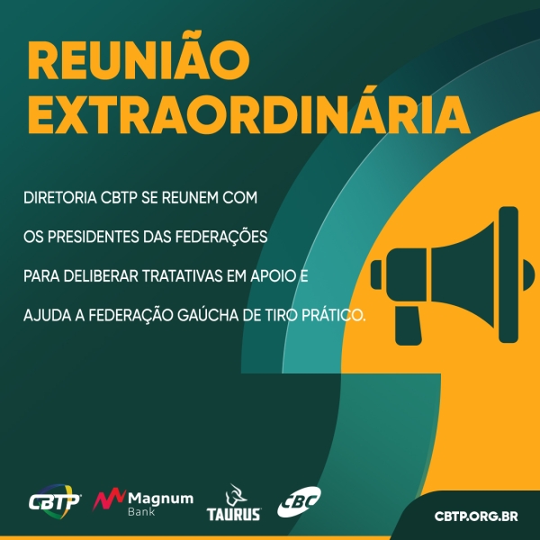 A Confederação Brasileira de Tiro Prático (CBTP) através dos membros da Diretoria, convocou os presidentes das Federações filiadas na manhã desta sexta-feira, dia 10 de maio, para uma reunião extraordinária.