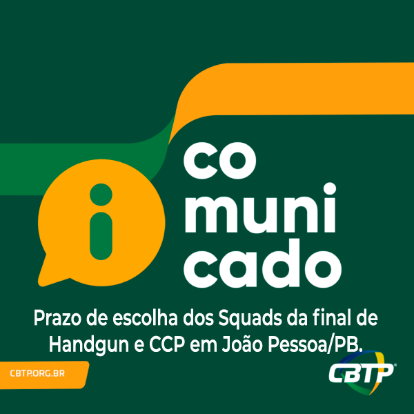 COMUNICADO: Prazo de escolha dos Squads da final de Handgun e CCP em João Pessoa/PB.