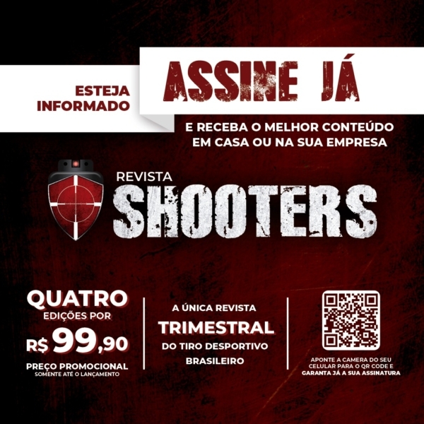 Assinando a revista SHOOTERS, você CAC, irá receber em sua casa ou empresa, um conteúdo EXCLUSIVO e super direcionado. A revista irá cobrir os principais eventos pelo país, entrevistar os maiores atletas e personalidades do TIRO DESPORTIVO Brasileiro. Tudo começará dia 19 de agosto, quando a primeira edição será lançada na SHOTFAIR BRASIL, em Joinville-SC no stand da própria revista.