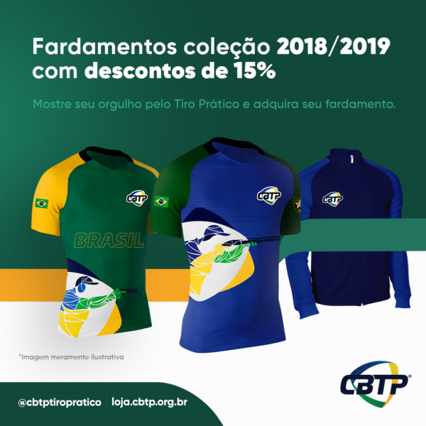 Confederados, a CBTP lança uma promoção de 15% para a coleção 2018/2019 de fardamentos. Essas peças já estão acabando, então aproveite e exiba o orgulho de ser um Atleta do Tiro Prático com os fardamentos oficiais da Confederação Brasileira de Tiro Prático.