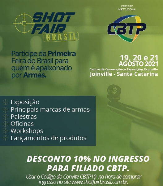 Você sabia que os filiados CBTP têm direito a um cupom de 10% na compra dos ingressos para a SHOT FAIR BRASIL?
