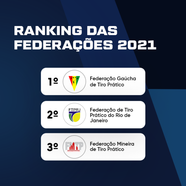 Acontece nesse final de semana, durante a I Etapa do XXXV Campeonato Brasileiro e Open Internacional de IPSC Handgun / IV Campeonato Brasileiro de IPSC Pistol Caliber Carbine em Curitiba, a premiação das 3 melhores Federações destaques do ano de 2021.