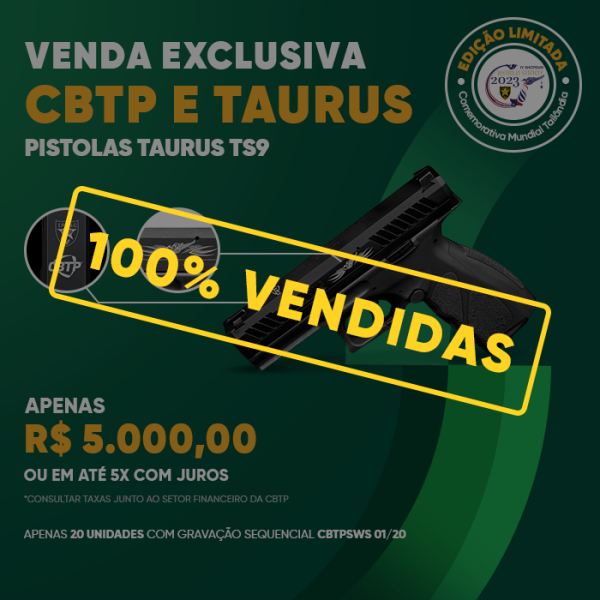A CBTP agradece a todos que participaram desta importante campanha. Em menos de 24horas todas as 20 Pistolas Taurus TS9 (Edição do Campeonato Mundial de Shotgun 2023) foram vendidas.